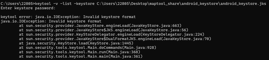 2、输入命令:keytool -v -list -keystore keystore文件路径。